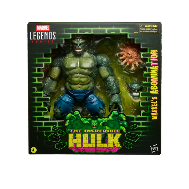 Hulk Marvel Legends Series Marvel’s Abomination 6-Inch Action Figure:Foreign saboteur Emil Blonsky is exposed to the same Gamma Rays that created the Hulk transforming him into the monstrous Abomination. Bring the excitement and wonder of the Marvel Universe to your collection with Hasbro Marvel Legends Marvel’s Abomination figure! This collectible 6-inch scale Marvel action figure is detailed to look like the character from Marvel's Hulk comics. Marvel’s Abomination action figure is fully articulated with premium design and poseable head, arms, and legs. This action figure set comes with 2 accessories: 2 alternate heads modeled after his different depictions in Hulk comics through the ages. Hasbro Marvel action figures' 6 inch scale make them great for posing and displaying in fans' collections. Pose Marvel’s Abomination and reimagine Hulk comics-inspired scenes on your shelf with Marvel Legends action figures and Marvel collectibles. Ages 4 and up.
